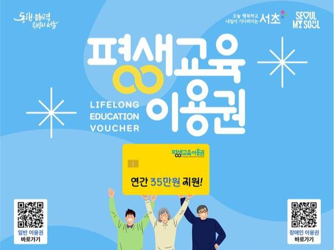 또, `장애인 평생교육이용권` 대상자는 주민등록상 서초구에 주소를 둔 19세 이상 등록 장애인으로, 보조금24 누리집 검색창에서 `서울시 장애인평생교육이용권`을 검색해 신청 가능하다. 이밖에 디지털, 노인 평생교육이용권은 6월 중 접수할 예정이다.