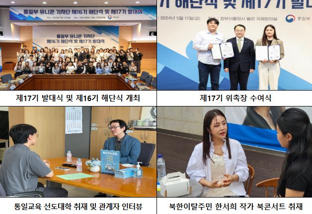 제17기 기자단은 1년간 통일 현장 취재와 콘텐츠 제작 활동을 통해 청년층 통일 공감대 확산에 힘썼다. 이들은 블로그 기사를 비롯해 영상 제작, 국내외 통일 관련 행사 취재 등 다양한 방식으로 국민과의 접점을 넓혀왔다.