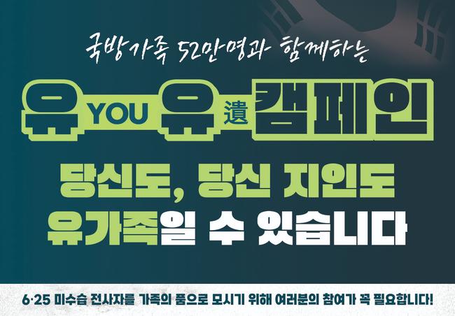 ‘유유캠페인’은 ‘당신도(YOU), 당신의 지인도 유(遺)가족일 수 있다’는 메시지를 담고 있으며, 미수습 전사자의 유해를 가족 품으로 돌려보내기 위한 국가적 노력의 일환이다. 국방부는 호국보훈의 달을 앞두고 각 부대에 캠페인 노래를 활용한 방송과 활동을 권장하고 있으며, 캠페인 음원은 국방부와 국방일보 홈페이지에서 누구나 자유롭게 다운로드하고 활용할 수 있다.