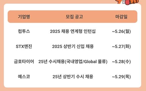 • 컴투스·STX엔진·금호타이어·예스코 등 주요 기업 채용 진행 중