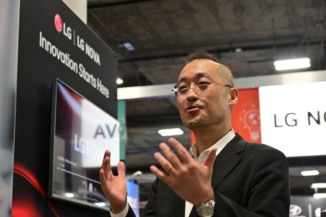 LG NOVA 이석우 부사장이 미래산업 영역에서 LG전자와 협업을 구체화하는 스타트업과 혁신 기술을 소개하고 있는 모습.