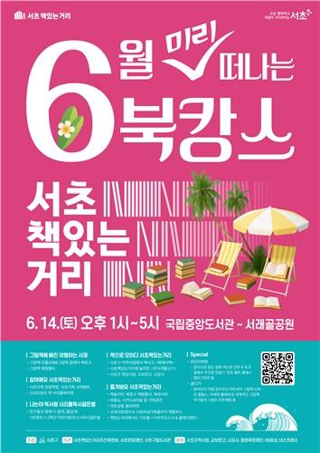 전성수 서초구청장은 "서초책있는거리는 구민들의 풍요로운 독서문화 생활을 위해 서초구와 도서관, 대형서점, 지역서점, 독립서점, 출판사가 함께 만들어가는 공간"이라며 "이곳에서 열리는 `6월 미리 떠나는 북캉스`에서 온 가족이 다양한 독서 체험을 통해 마음이 풍요로운 여름휴가를 맛보길 바란다"고 전했다.