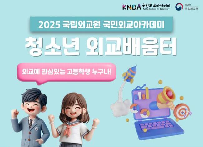 국립외교원이 외교와 국제관계에 관심 있는 고등학생을 대상으로 2025년 국민외교아카데미 「청소년 외교배움터 과정」 참가자를 모집한다.