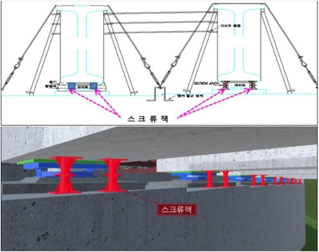 전체 120개의 스크류잭 중 72개가 이미 제거된 상태였고, 전도방지 와이어 또한 제거되어 있었다.